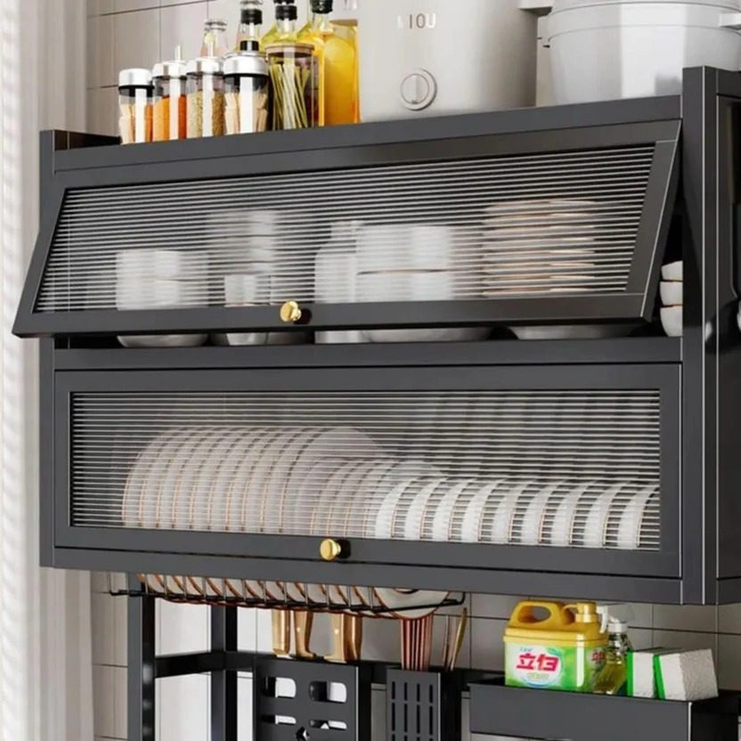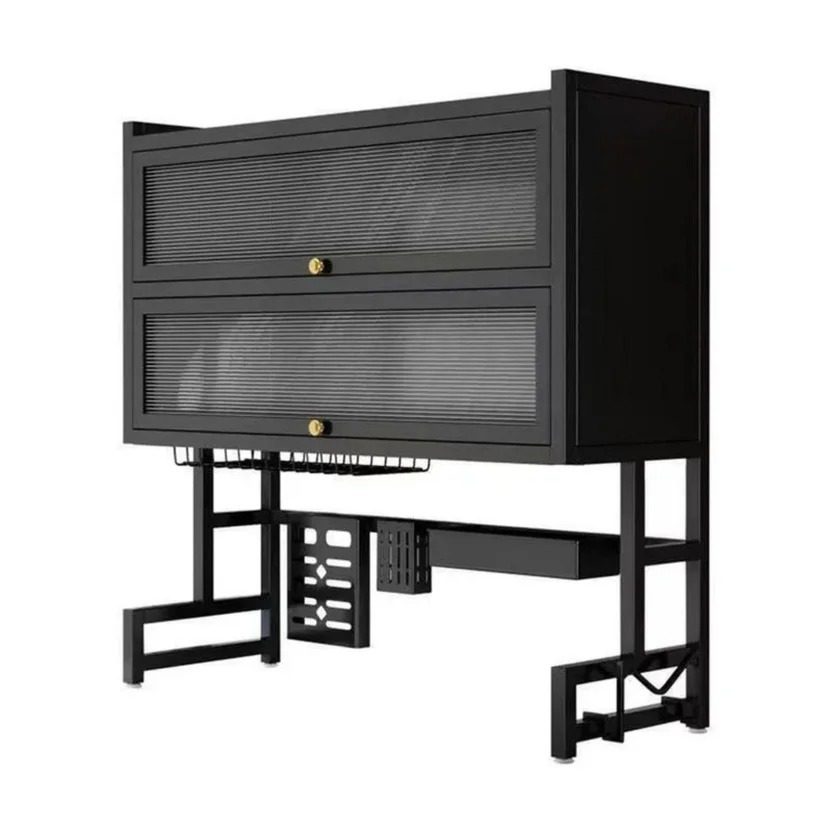 Escurridor organizador de cocina autoportante para colocación directa sobre el mesón, diseñado para instalarse encima del fregadero sin necesidad de perforaciones ni anclajes a pared. El producto integra un gabinete superior cerrado con sistema de secado por gravedad y una estructura inferior abierta que permite el drenaje directo del agua hacia el fregadero. Su diseño estructural se apoya completamente sobre patas metálicas, garantizando estabilidad mecánica y distribución uniforme de carga sobre la superficie del mesón.