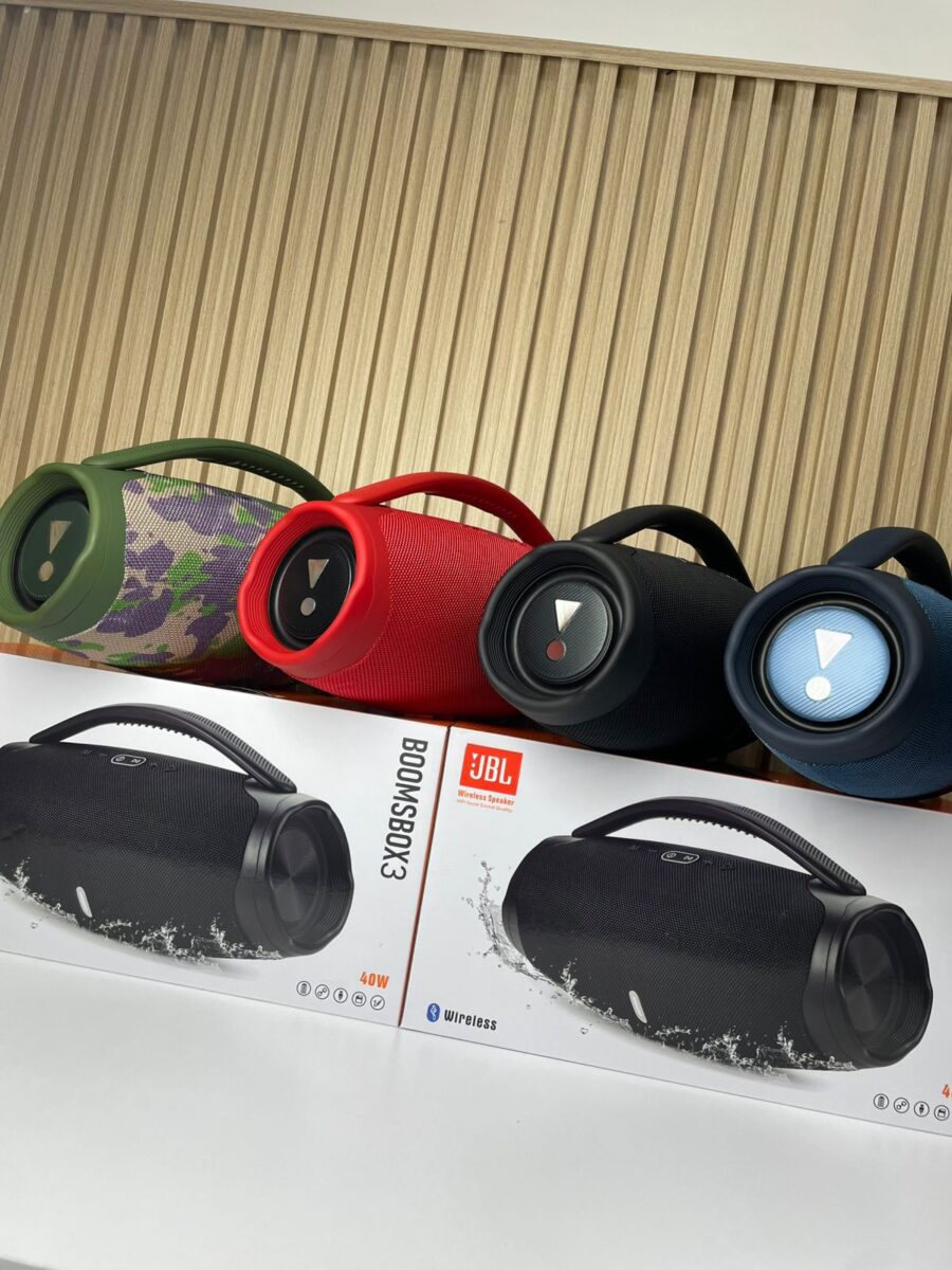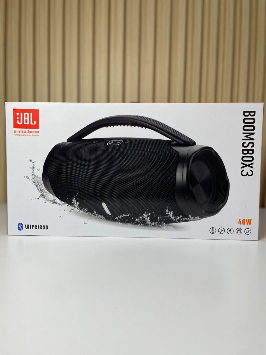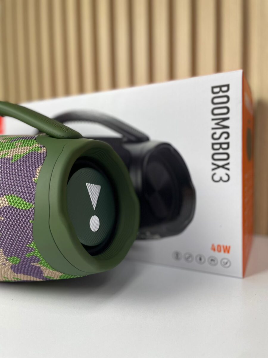 El Booms Box 3 XL es un altavoz inalámbrico portátil de alta potencia (40 W) diseñado para ofrecer reproducción de audio con graves intensos y agudos claros en espacios abiertos o interiores. Su diseño robusto incluye un cuerpo cilíndrico cubierto por malla protectora, un asa ergonómica para transporte y radiadores pasivos laterales con iluminación LED. Es resistente a salpicaduras de agua, lo que lo hace apto para actividades al aire libre