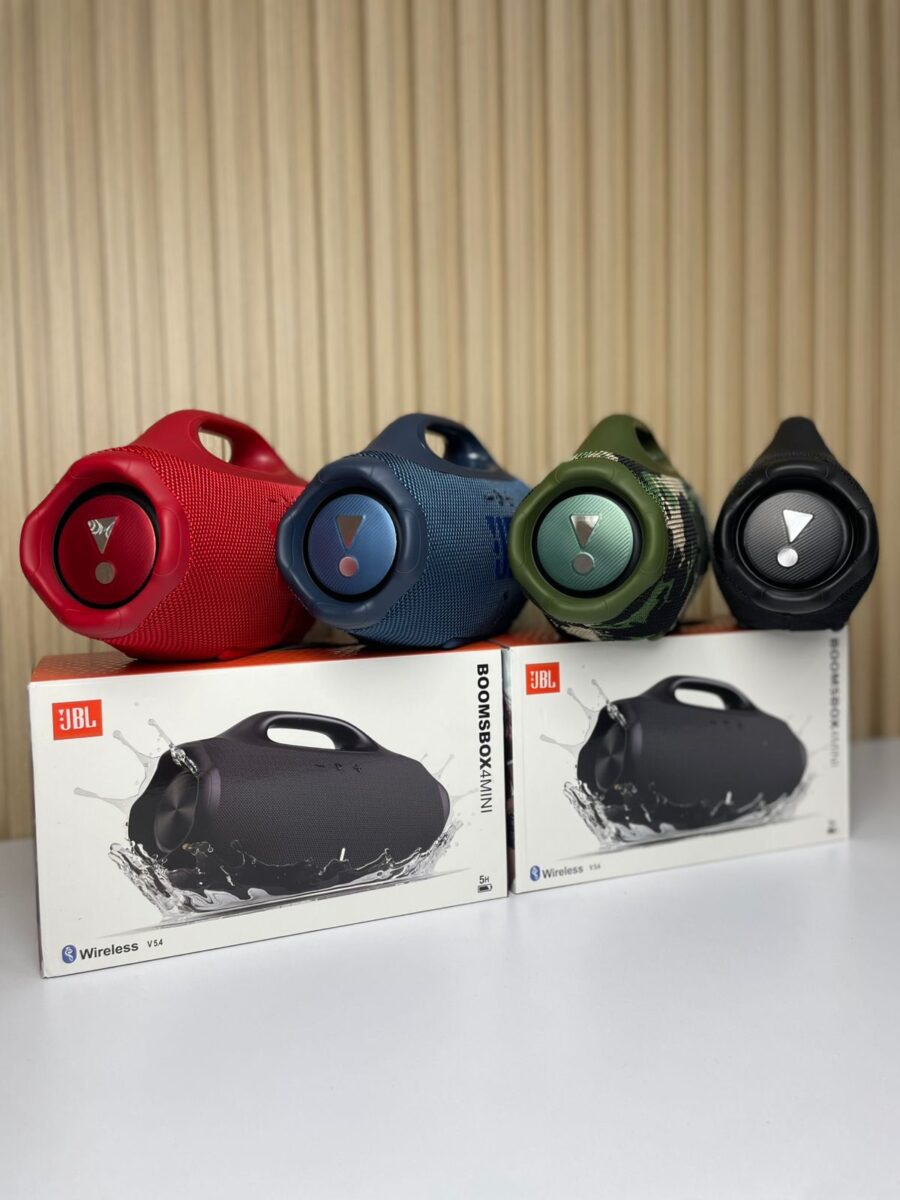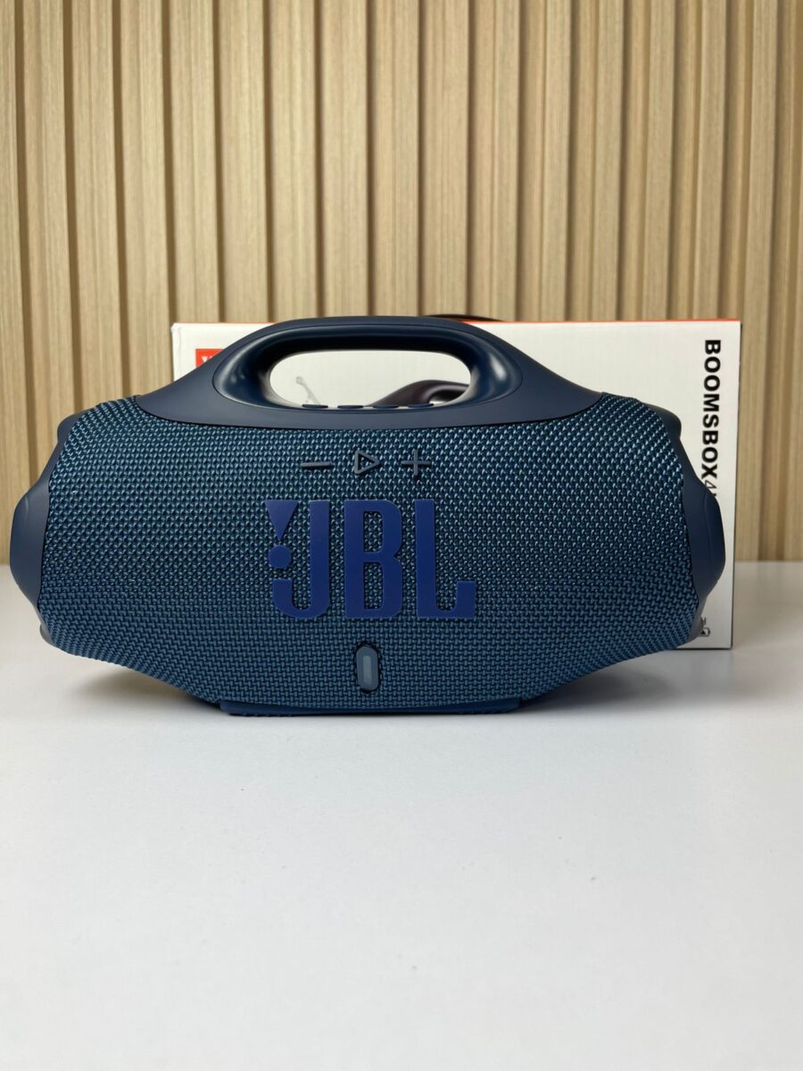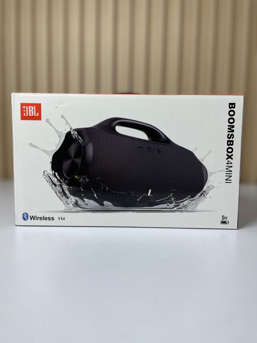 Parlante portátil inalámbrico tipo caja de sonido compacta, identificado comercialmente como Boombox 4 Mini, diseñado para la reproducción de audio mediante conexión inalámbrica Bluetooth. Presenta un formato horizontal con asa superior integrada para transporte manual, recubrimiento externo textil y carcasa plástica. El equipo está orientado a uso portátil en interiores y exteriores, con énfasis en facilidad de transporte y autonomía energética.