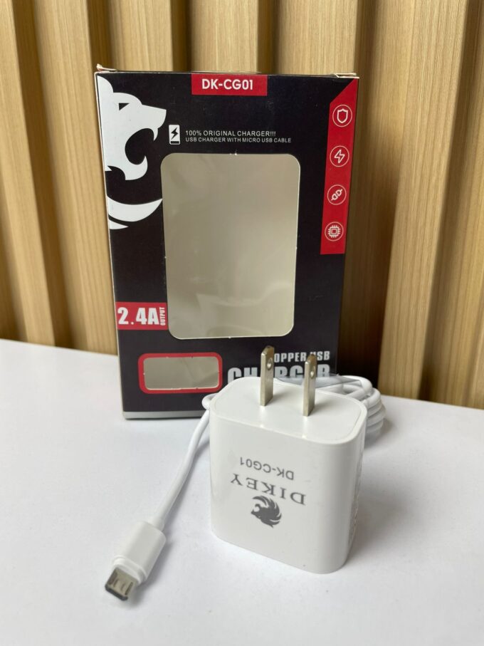 El cargador de pared Dikey DK-CG01 es la opción ideal para quienes buscan una carga rápida, segura y confiable para sus dispositivos móviles. Con una salida de 2.4A, es perfecto para teléfonos inteligentes, tablets y otros dispositivos USB, brindando eficiencia y cuidando la vida útil de la batería. Incluye cable USB para una conexión inmediata