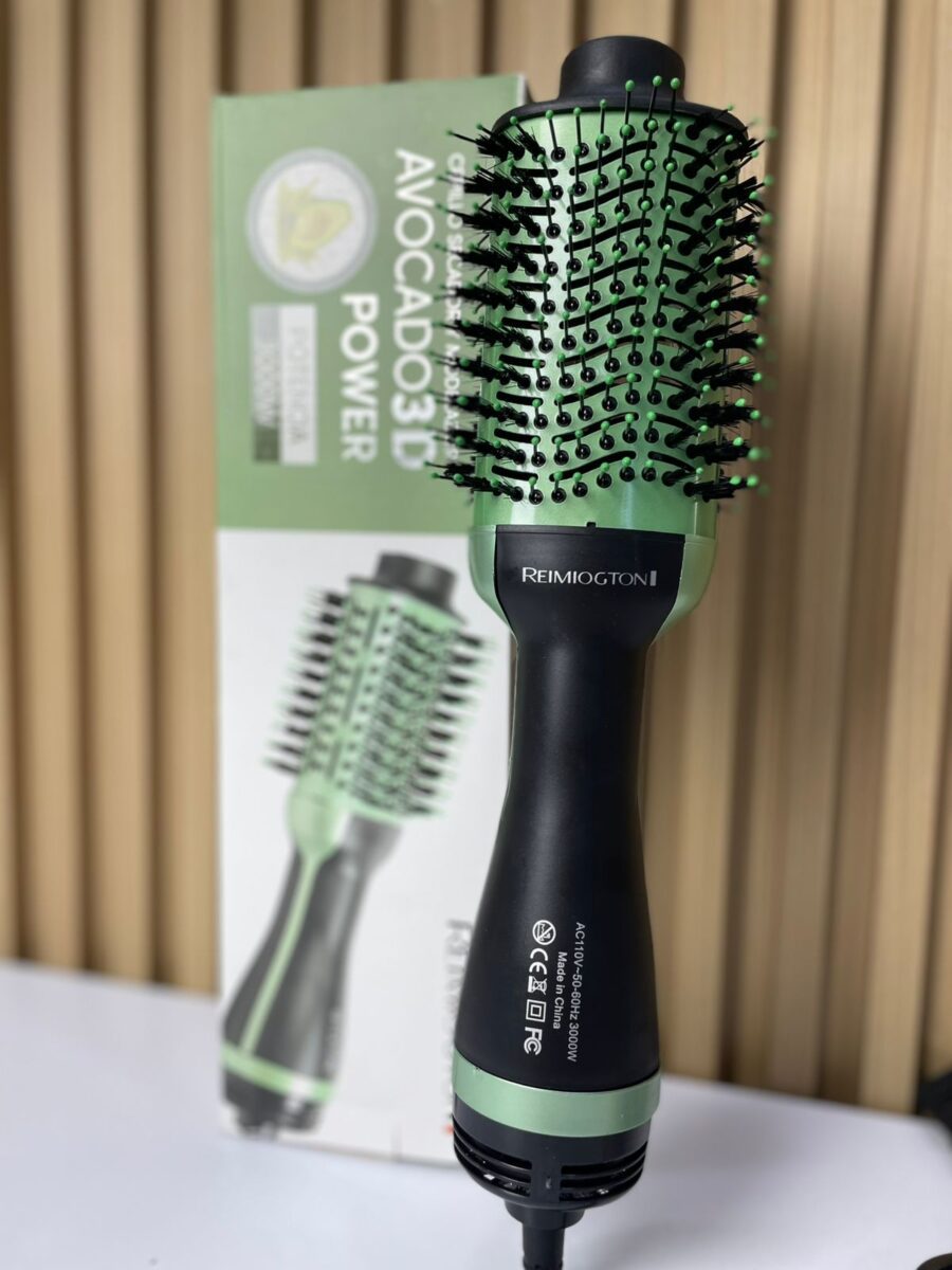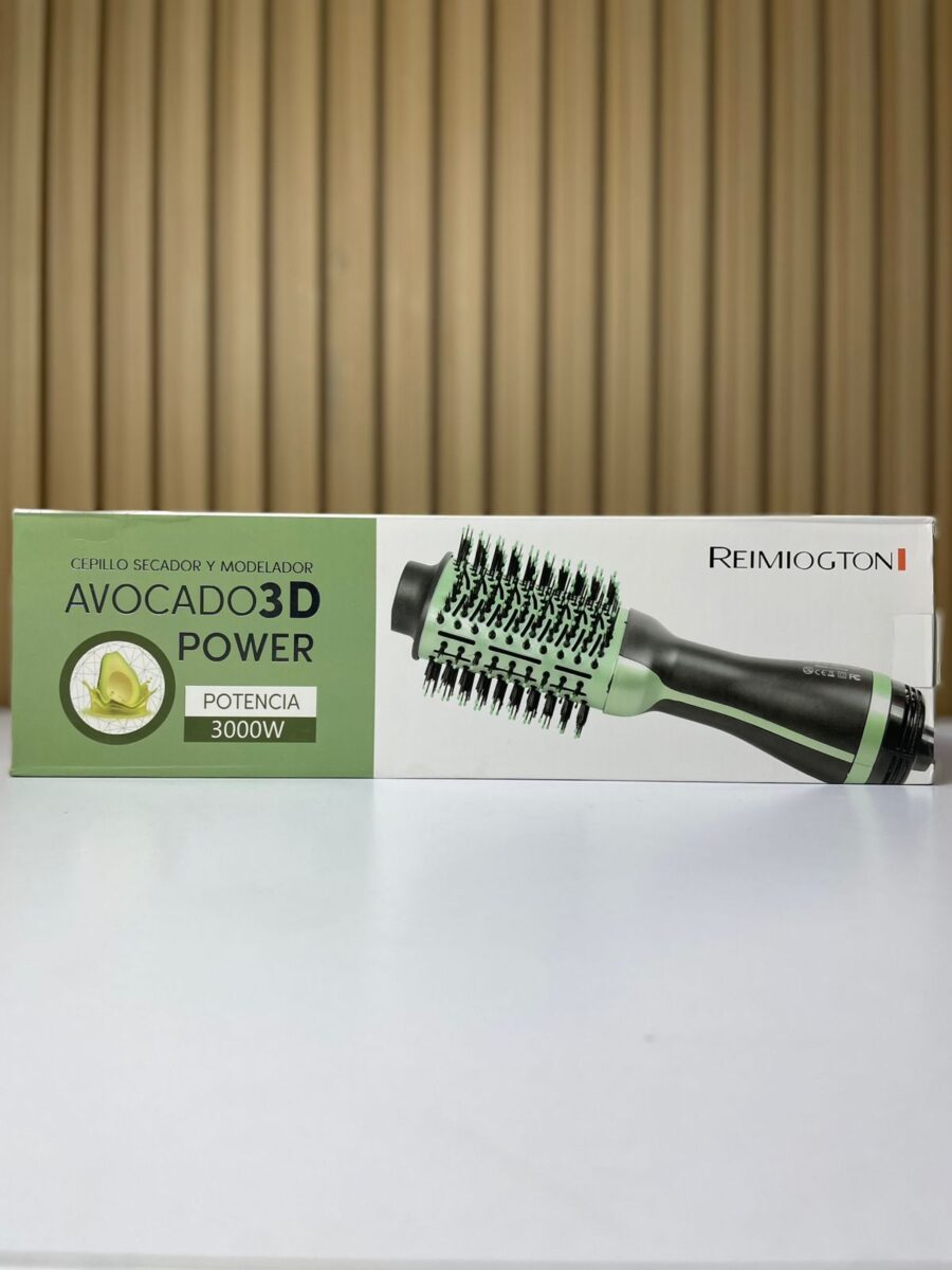 El cepillo secador REIMIOGTON Avocado 3D Power es un dispositivo eléctrico diseñado para el secado, alisado y modelado del cabello en una sola operación. Incorpora un cilindro de diseño ovalado con recubrimiento cerámico y cerdas mixtas, optimizado para cabellos húmedos y secos. Su sistema de ventilación distribuye aire caliente de manera uniforme, mientras que el motor interno trabaja en conjunto con un cable giratorio de 360° que mejora la maniobrabilidad durante el estilizado.
