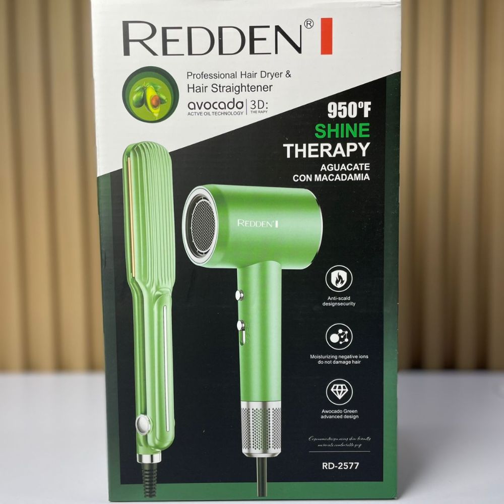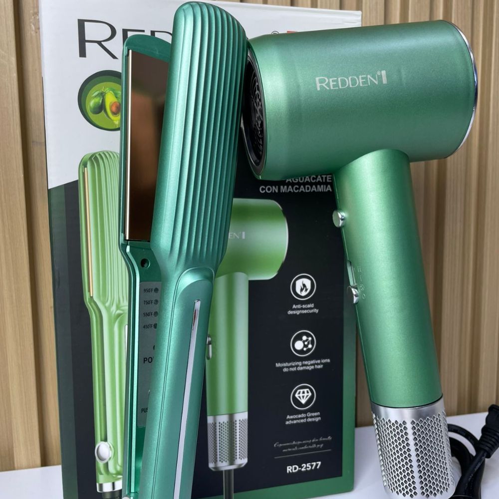 El combo modelo RD-2577 “Avocado 3D Shine Therapy” es un sistema integral de estilizado capilar que incluye un secador de cabello compacto de alta velocidad y una plancha alisadora de placas térmicas. Ambos dispositivos incorporan tecnología de tratamiento superficial con infusión de aguacate y macadamia, orientada a optimizar la distribución del calor, mejorar el brillo y reducir el frizz. El conjunto está diseñado para cubrir procesos completos de secado y alisado con control térmico y flujo de aire eficiente.