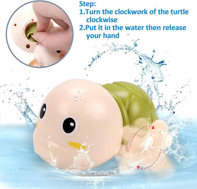 Juguete acuático con mecanismo de cuerda que simula el movimiento de natación de una tortuga, diseñado para entretener al bebé durante el baño.