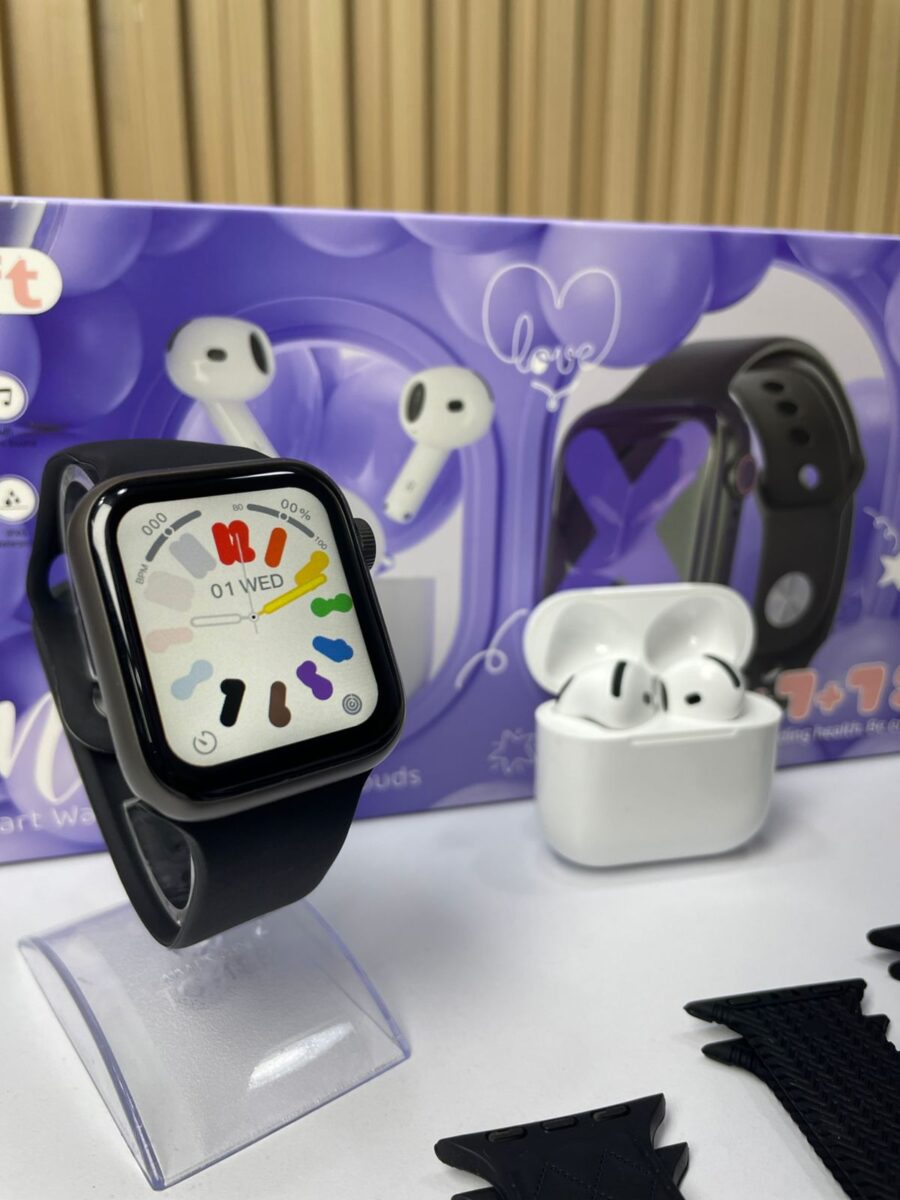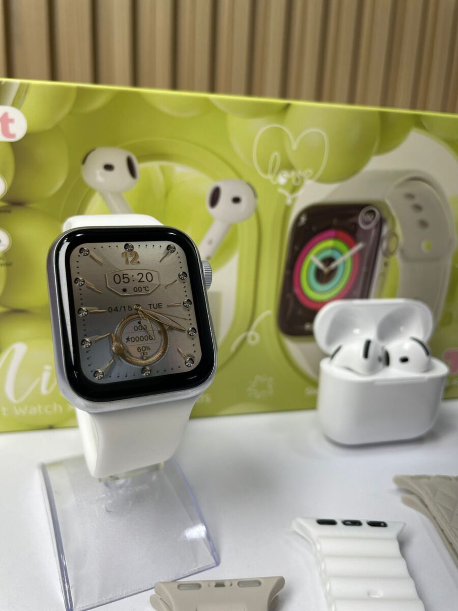 El K27-COMBO MINI es un set compacto y elegante que incluye un reloj inteligente de 41 mm con caja de aluminio y unos audífonos inalámbricos con estuche de carga. Está diseñado para ofrecer practicidad, conectividad y estilo en un formato mini, ideal para uso personal o como regalo.
