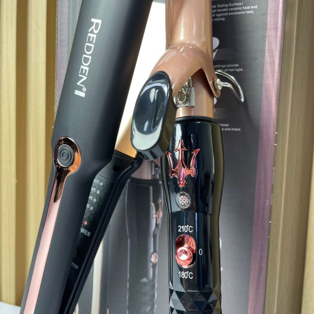 El combo modelo RD-2566 “Shine Therapy Keratina + Aceite de Argán” es un sistema de estilizado capilar que integra una plancha alisadora y una rizadora cilíndrica con pinza. Ambos dispositivos están diseñados para trabajar con calor controlado y superficies recubiertas con tecnología de microacondicionadores, orientadas a mejorar la distribución térmica, reducir el frizz y optimizar el acabado del cabello. El sistema permite realizar procesos de alisado y rizado con herramientas complementarias dentro de un mismo conjunto.