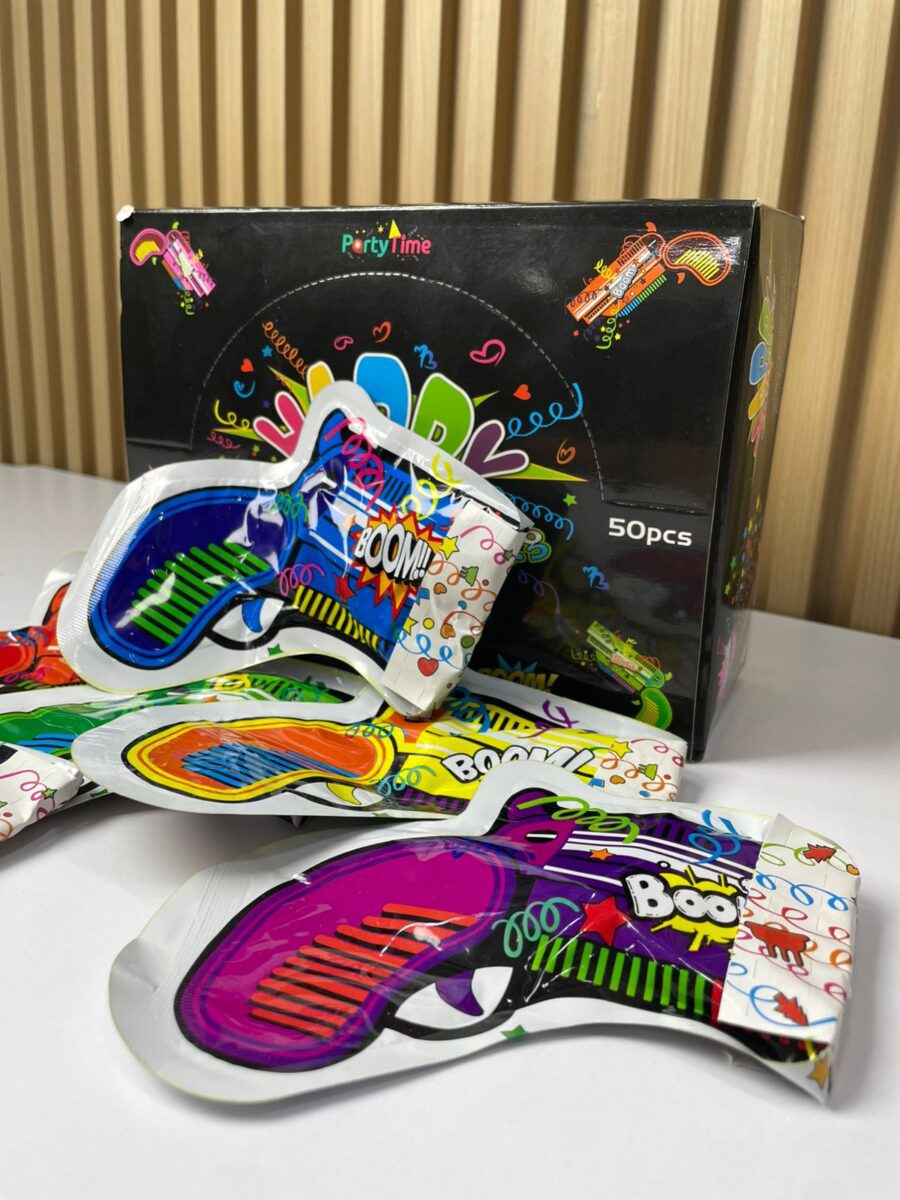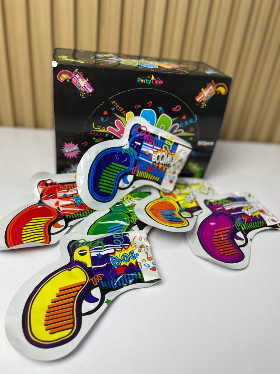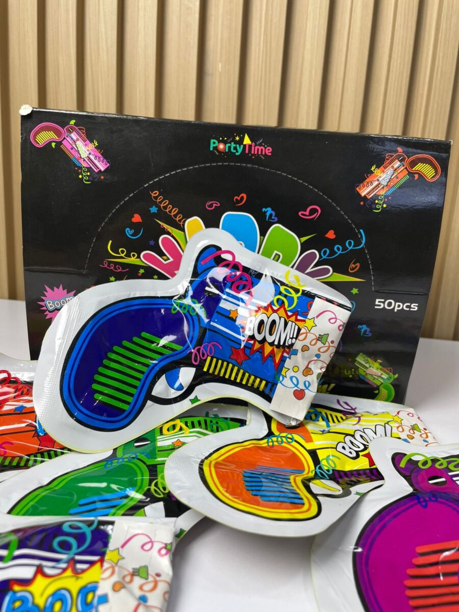 “POP BOOM” Party Time, un artículo recreativo de uso temporal que genera un pequeño estallido al ser presionado o lanzado. Cada unidad contiene una cápsula flexible con líquido interno, diseñada para producir un efecto de estallido acompañado de sonido, sin elementos pirotécnicos ni químicos combustibles. Está destinado para juegos festivos o celebraciones, ofreciendo una experiencia visual y sonora breve y segura bajo supervisión adulta.