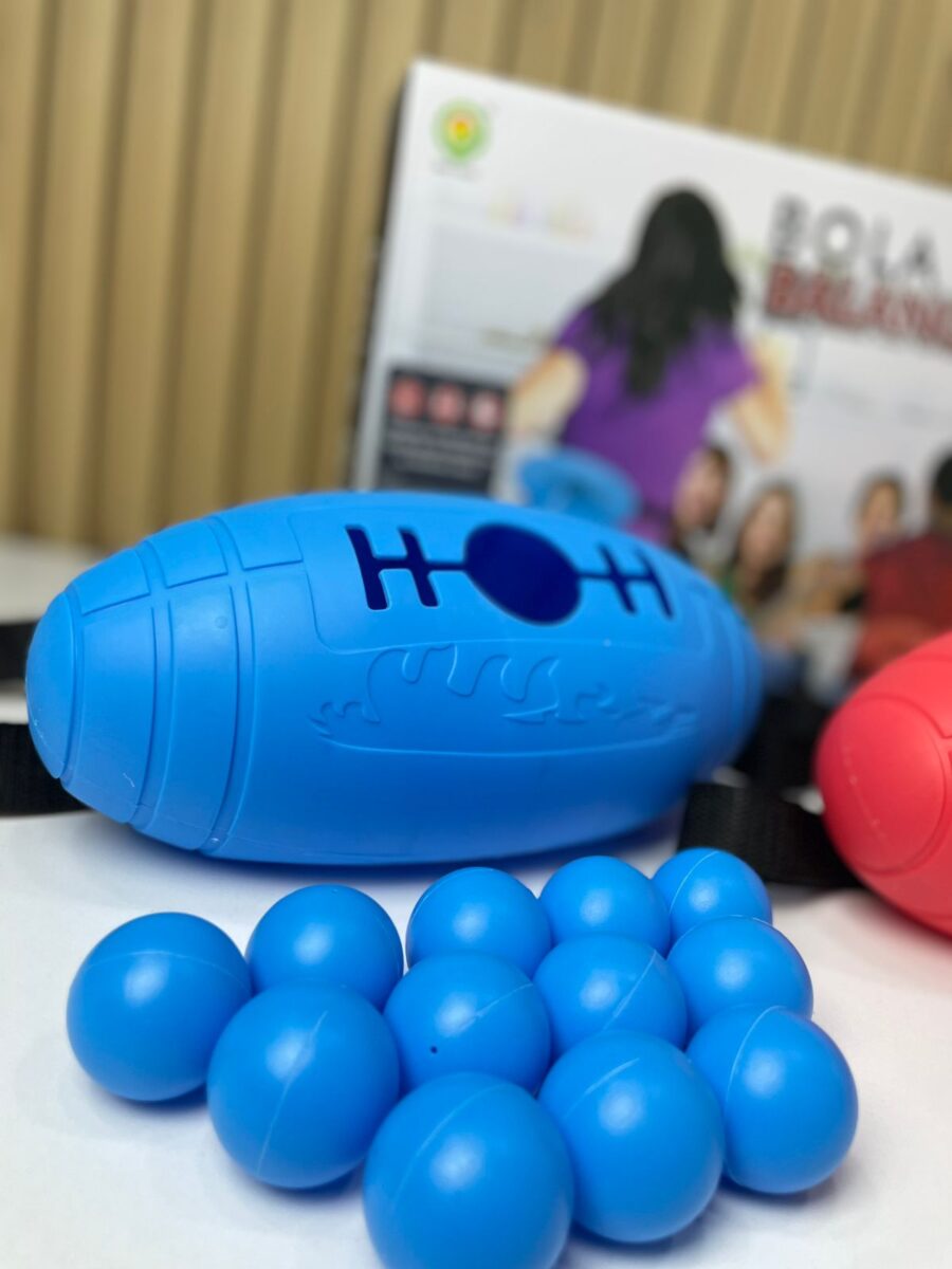 • 2 recipientes esféricos (1 rojo y 1 azul) con apertura para pelotas
