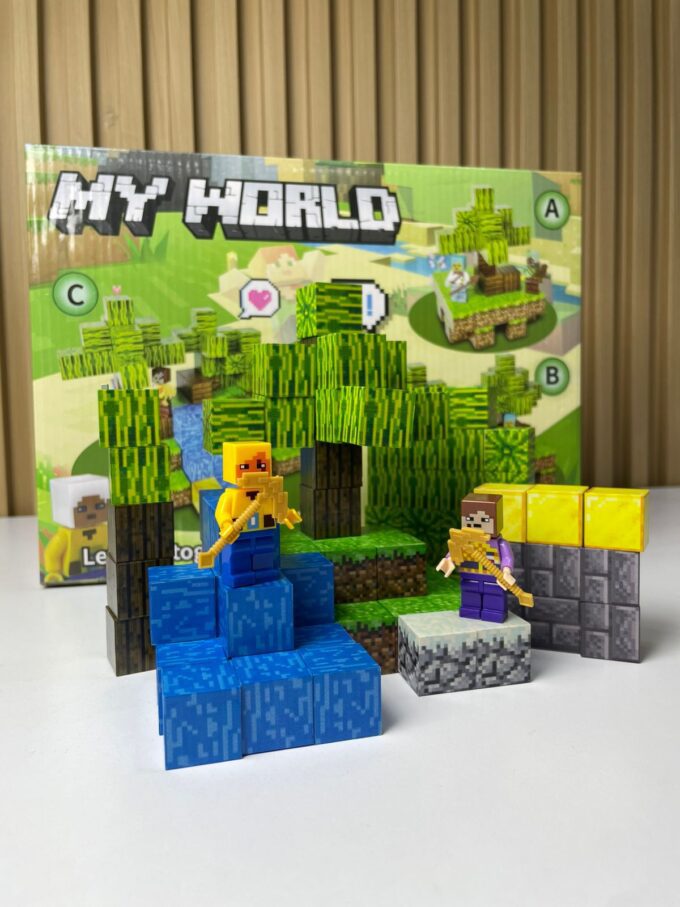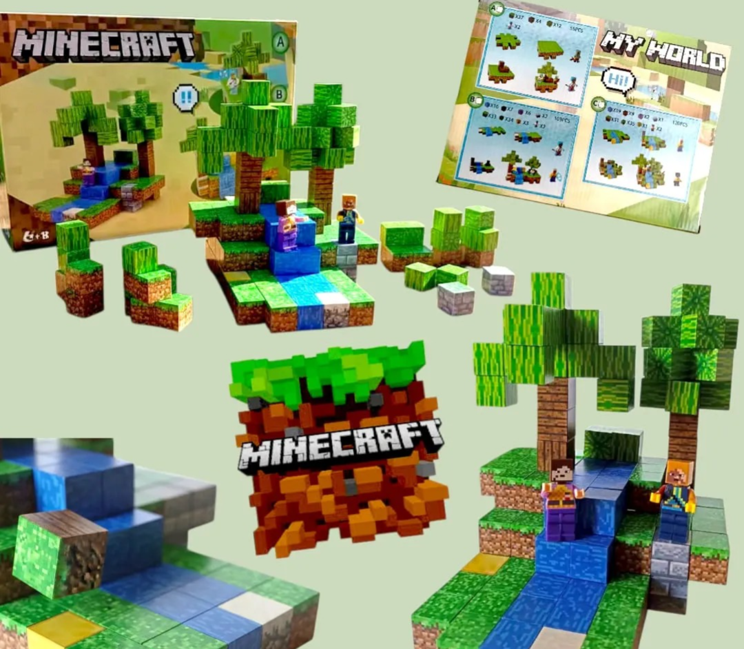 Juego de construcción modular compuesto por 103 piezas tipo bloques ensamblables, diseñado para recrear escenarios tridimensionales inspirados en entornos cúbicos digitales. El set incluye bloques temáticos, elementos estructurales y figuras tipo personaje, permitiendo la construcción de múltiples configuraciones como paisajes, estructuras y escenas interactivas. Utiliza un sistema de encaje a presión que facilita el ensamblaje sin herramientas.