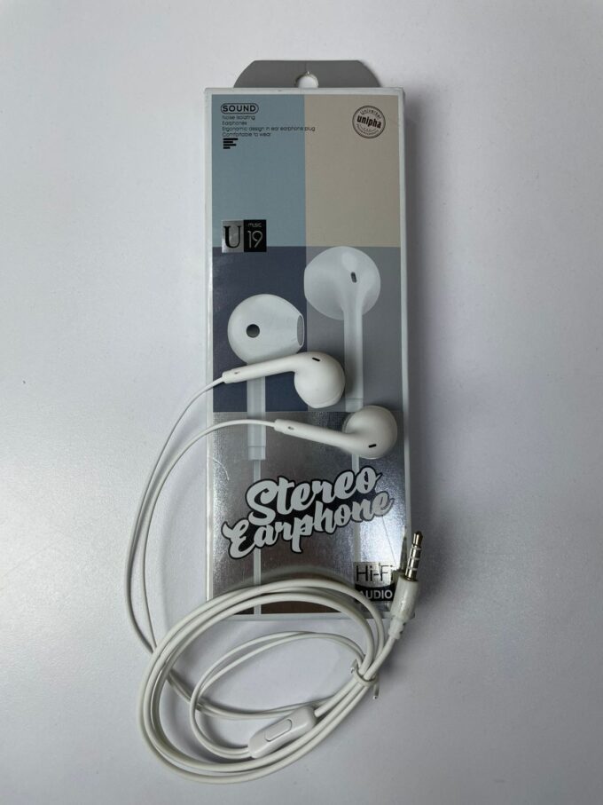 Los audífonos Stereo Earphone U19 ofrecen un sonido estéreo de alta fidelidad con un diseño moderno y minimalista. Su formato tipo earbud garantiza un ajuste cómodo y ligero, ideal para uso diario. Disponibles en varios colores, son perfectos para quienes buscan estilo y calidad de audio en un solo producto