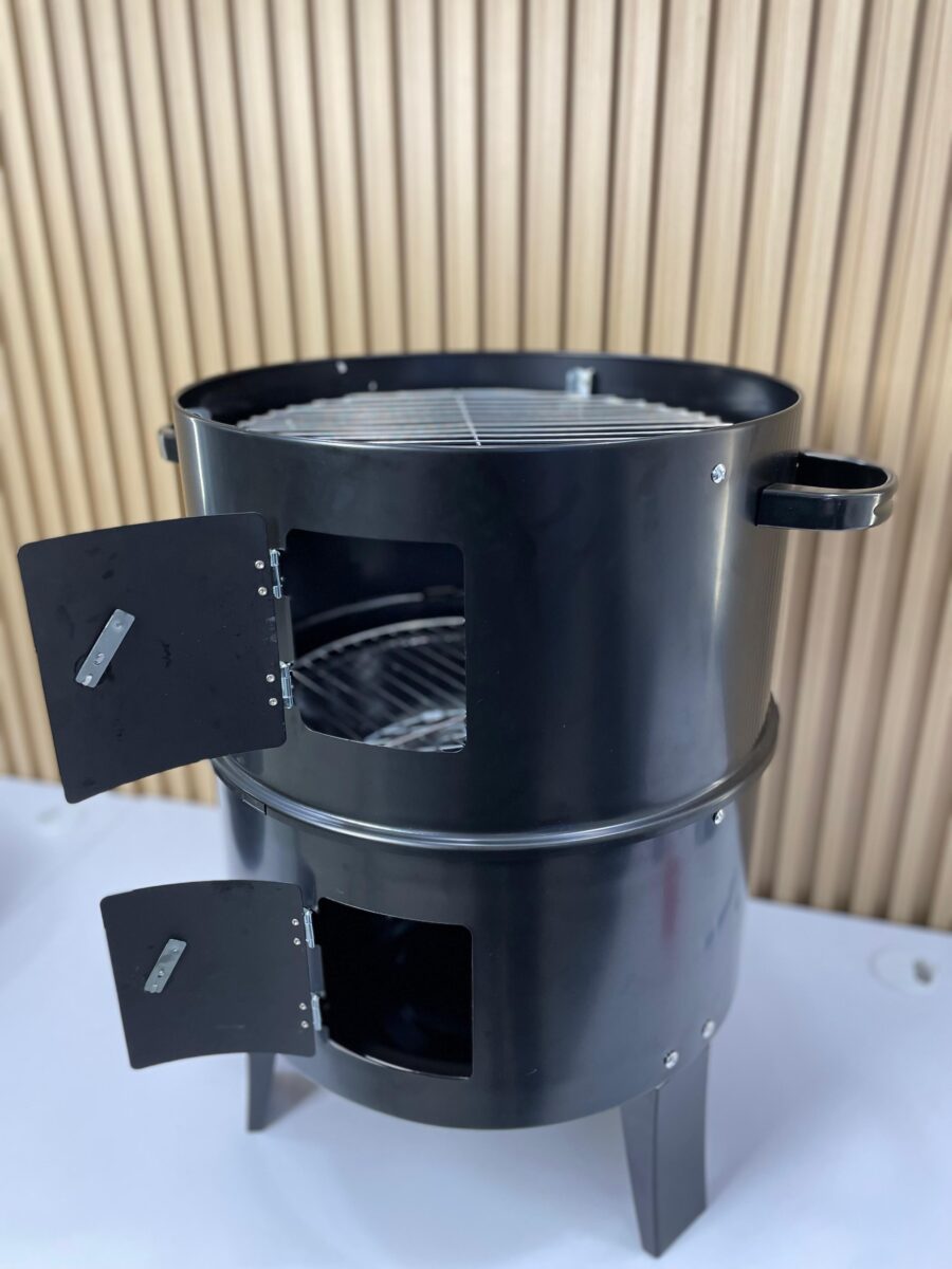 Puertas de acceso frontal: Permiten agregar carbón o ajustar los niveles de humo sin interrumpir la cocción