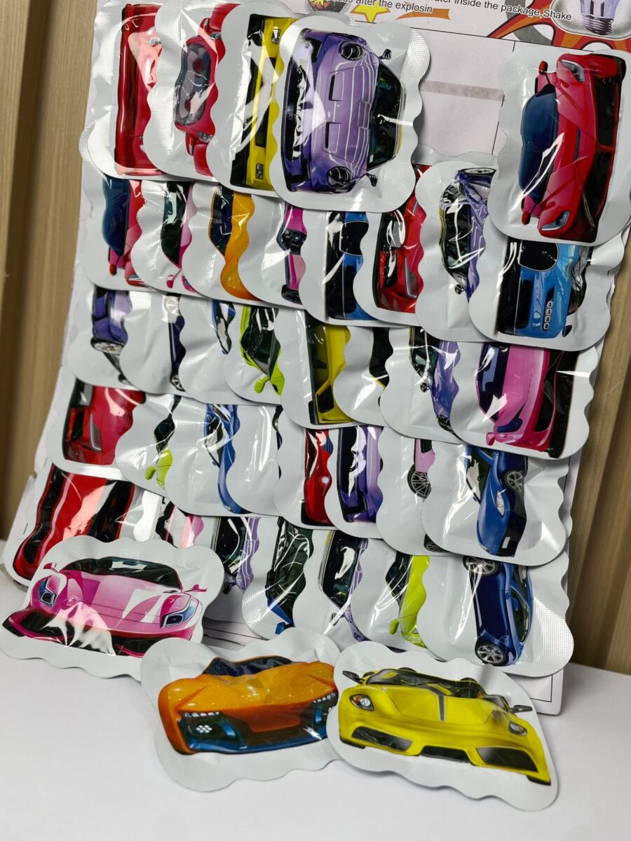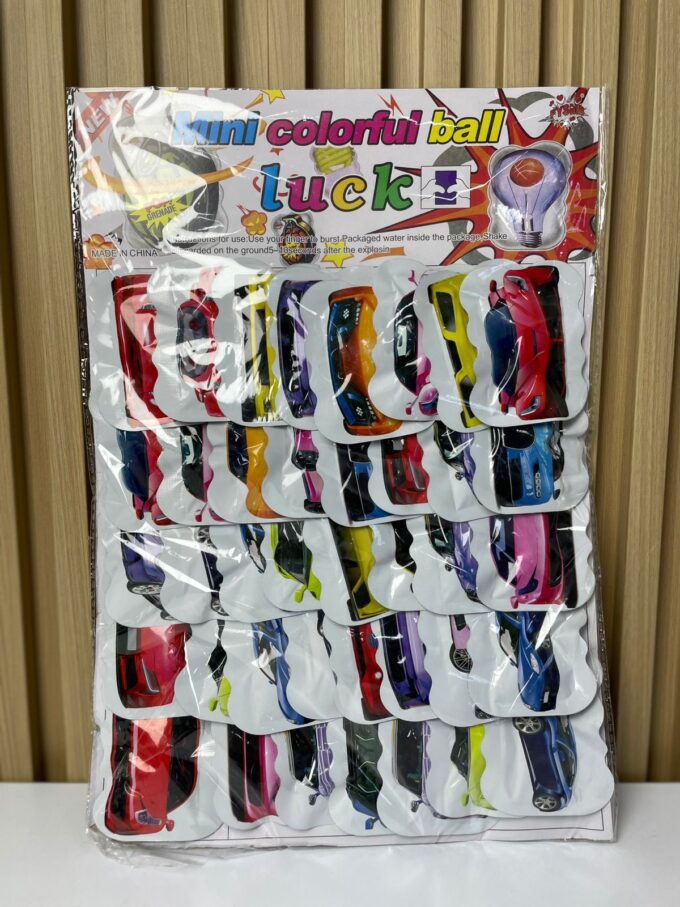 “Mini Colorful Ball Luck”, un juguete infantil de acción ligera que contiene pequeñas cápsulas con líquido en su interior diseñadas para generar un efecto de estallido al ser presionadas o lanzadas al suelo. Cada unidad está recubierta con envoltorios de colores con motivos de automóviles deportivos, destinados a captar la atención visual de los niños. Es un artículo de entretenimiento temporal, ideal para juegos al aire libre bajo supervisión adulta.