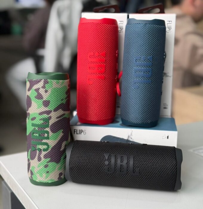 Altavoz portátil inalámbrico tipo cilíndrico diseñado para reproducción de audio mediante conexión Bluetooth. El modelo Flip 6 está optimizado para uso en exteriores e interiores, integrando un sistema acústico de dos vías con resistencia a condiciones ambientales. Incorpora batería recargable interna y controles físicos integrados para operación directa.