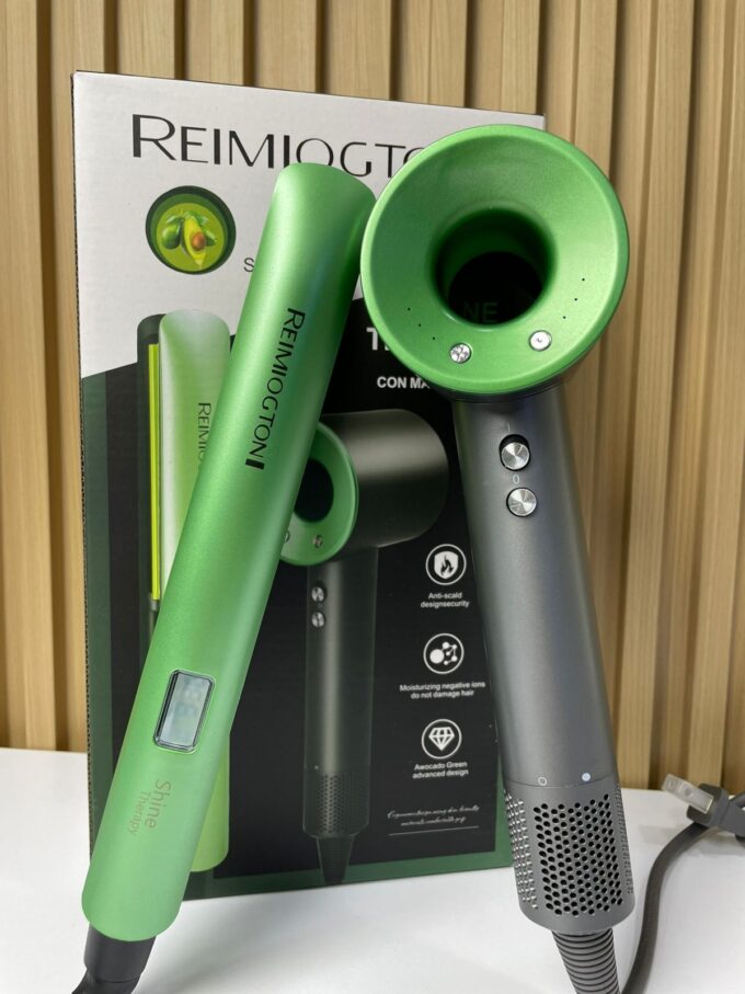 El Kit Reimiogton Shine Therapy combina un secador de alto rendimiento y una plancha profesional con tecnología avanzada de aceite activo de aguacate y macadamia. Diseñado para proteger el cabello mientras lo peinas, aporta suavidad, brillo y un acabado sedoso, incluso con uso diario. Ideal para uso profesional y doméstico