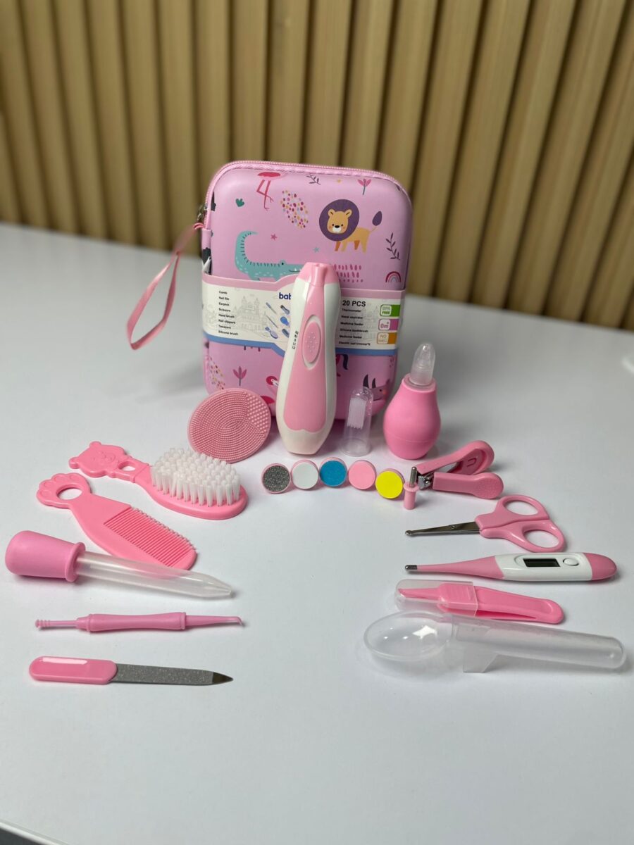 El set de aseo para bebés de 20 piezas es un kit integral diseñado para cubrir las necesidades básicas de cuidado e higiene de los más pequeños. Incluye herramientas seguras y adaptadas para el uso en recién nacidos y bebés, almacenadas en un estuche portátil con cierre, lo que facilita su organización y transporte.